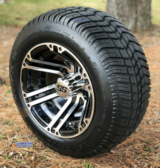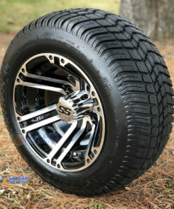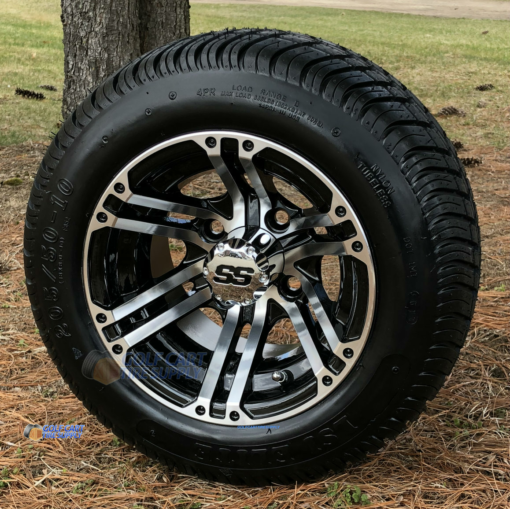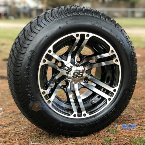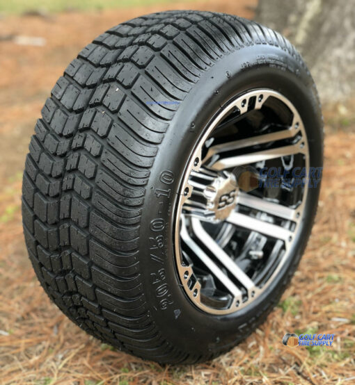 10″ Terminator Machined/Black Golf Cart Wheels and 205/50-10 DOT Low Profile Golf Cart Tires Combo (Set of 4) For Sale